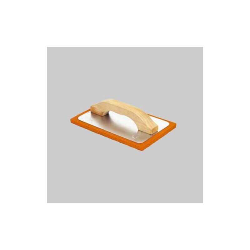Supporto in alluminio, manico in legno levigato. Frattone in gommaspugna levigato 28 28x14 cm - sp. 20 mm - arancio (morbida) MADE IN ITALY Cazzuole e frattoni