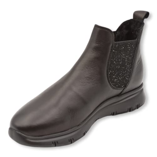 FRAU, Stivaletti Casual-Sportivo in Pelle Nero Altezza Caviglia, Con Elastico Bilaterale e Pull Up sul Retro, Suola Leggera e Super Flessibile in Gomma, 36, Made in Italy