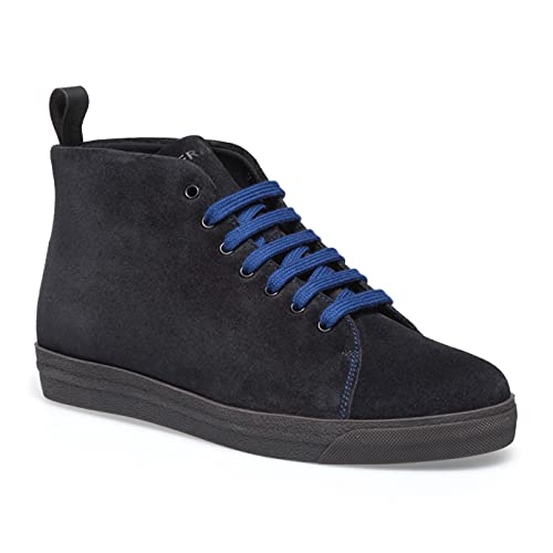 Frau, Stivaletto Casual Uomo in Morbida Pelle Scamosciata Blu con Lacci in Cotone, Suola GO!ZERO Composta da Materiale Biodegradabile, Ideale per il Tempo Libero 39, Made in Italy