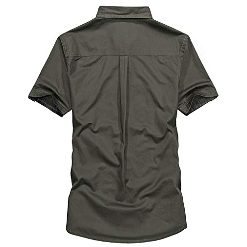 FRAUIT Camicia Uomo Manica Corta Militare Camicie Uomini Maniche Corte con Taschino Magliette Coreana Ragazzo T Shirt Strane Estive Camicia Slim Fit Cotone Maglia