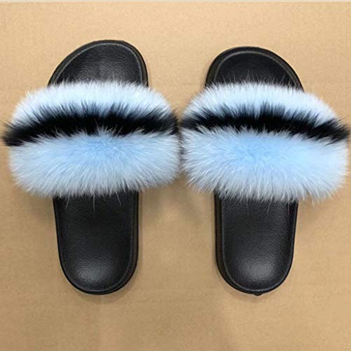 FRAUIT Donna Ciabatte Pelliccia Pantofole con Peluche Pelo Sandali Antiscivolo Casuale Slippers con Punta Aperta Sandalo Da Spiaggia Mare Piscina Scarpe Ragazza Eleganti Estive (Azzurro, 36-37 EU)