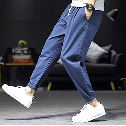 FRAUIT Plus Size Oversize Pantaloni Lino Uomo Slim Fit Coulisse Pantalone Tuta Uomini Cotone Leggero Taglie Forti Pantaloni Ragazzo Cargo con Elastico alle Caviglie Pantaloni da Lavoro Estivi Lunghi