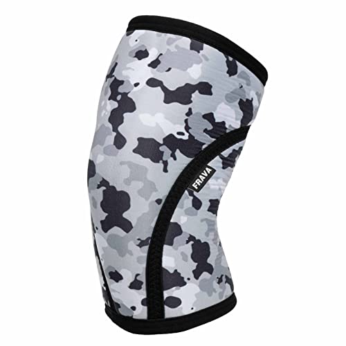 FRAVA FITNESS - Fascia Ortopedica Elastica per Ginocchia in Neoprene 7mm- Ginocchiera Sportiva - Tutore per Leg Press, Powerlifting, Bodybuilding, Calcio, Corsa ecc .. (M, GRIGIO)