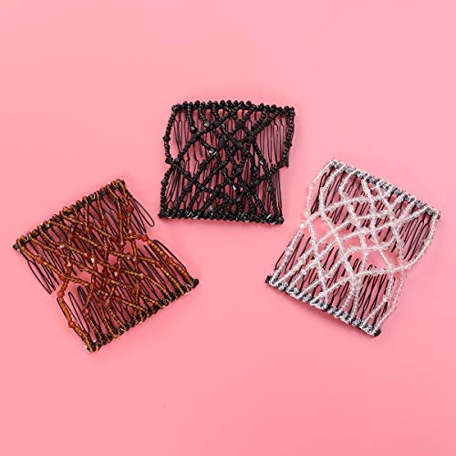 Frcolor 3pcs doppie clip di capelli magici pettini capelli bun maker elastico in rilievo accessori per lo styling dei capelli per la donna (bianco, nero, caffè)