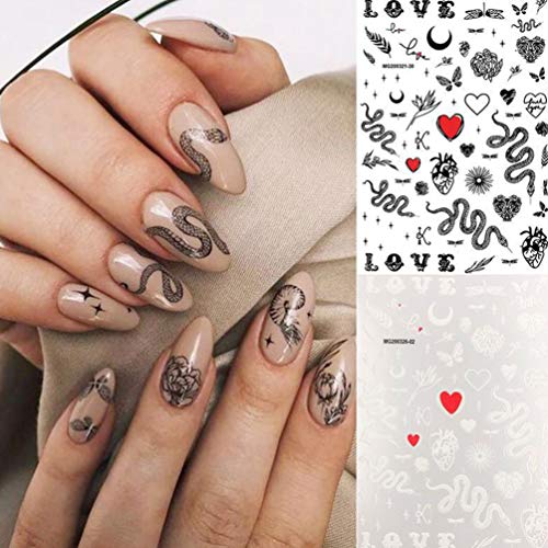 FRCOLOR 6Pcs Nail Art Sticker Punta Dellunghia Decalcomania Forniture Adesivi per Manicure Serpente Decorazioni per Donne Signora Ragazze (3 Pezzi Nero 3 Pezzi Bianco)