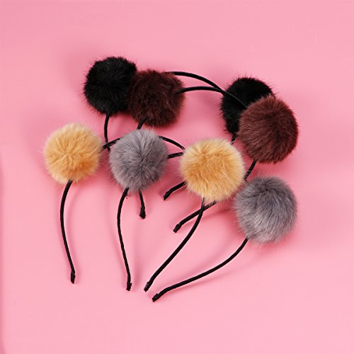 Frcolor Cerchietto con pom pom per bambina in Marrone Cachi Grigio e Nero 4PCS
