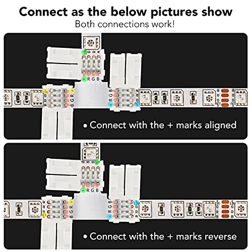 Frcolor Connettore angolare a forma di T per strisce LED, con 2 chiusure RGB 5050, 10 pezzi
