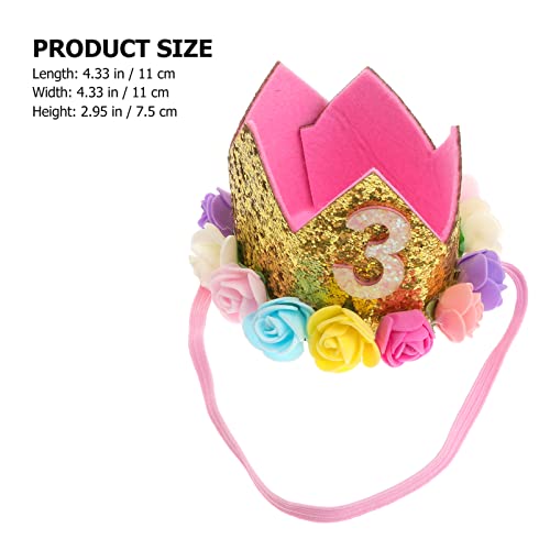 Frcolor Fasce per Capelli Corona 3 Anni Tiara Corona con Fiore per Compleanno Per 3 Anni di età Neonat