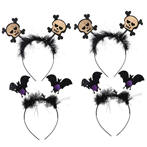 FRCOLOR 4 Pezzi Halloween Pipistrello Ala Fascia Cappello Costumi Teschio Copricapo Cerchietto per Capelli Accessori per Feste per Donne Ragazze Cosplay Party Photo Booth (Nero)