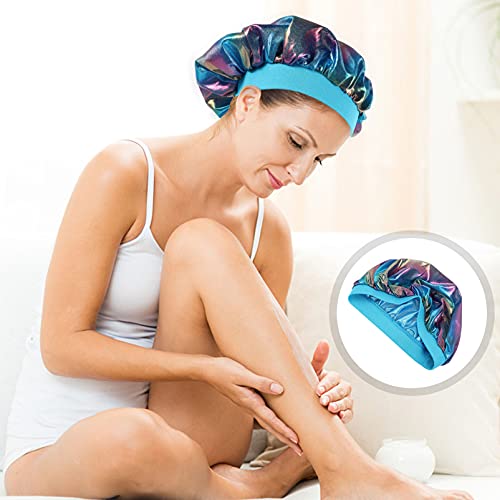 FRCOLOR Wrap Curly Soft Chemio Satin Regolabile Haircare Spa Hair Cover Holographic Elastic Cap Turban Cap Sleeping Reflective Hat Bath Shower Long Loss Sleep Bagno Ragazze Women Caps