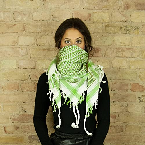 Freak Scene Kefiah - bianco - verde-cachi - 100x100 cm - Shemagh - Sciarpa Arafat Foulard kefiah palestinese 100% cotone