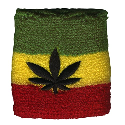Freak Scene Polsino - Fascia da polso tergisudore ricamata - Foglia di maria - rosso-giallo-verde-nero - Rasta