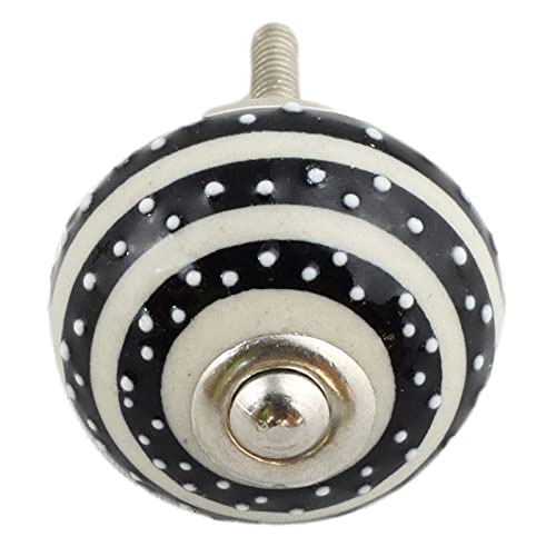 Freak Scene Pomello in ceramica shabby chic - Righe - Punti - nero -bianco
