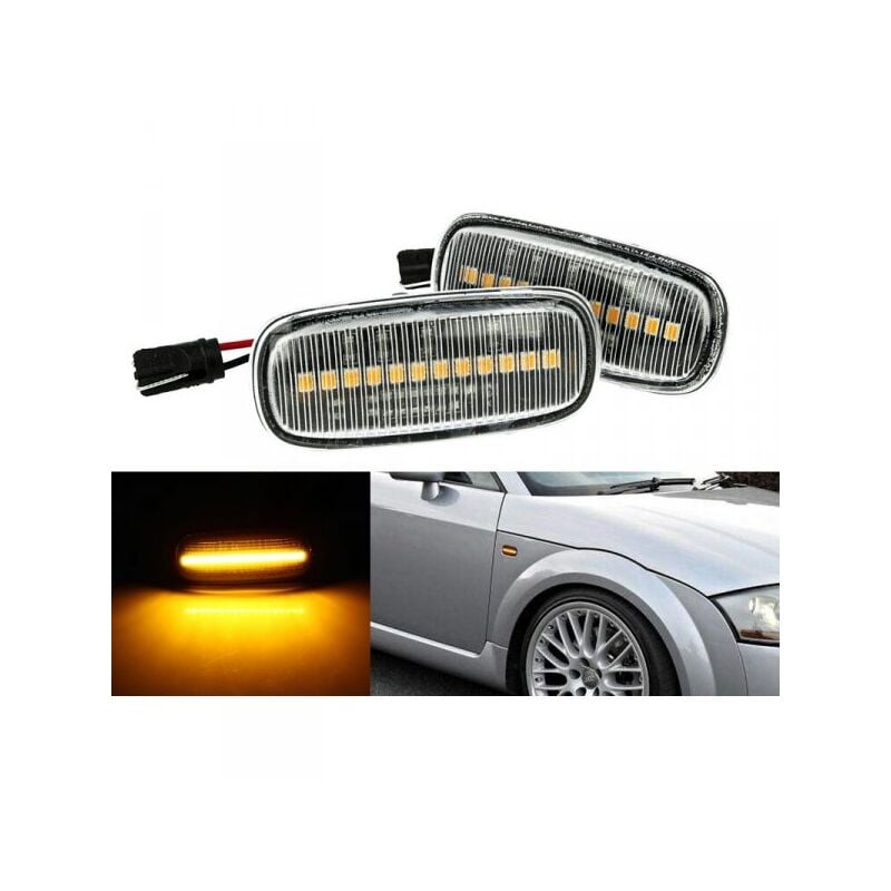 Kit Freccia Laterale a Led Side Marker Modello Lente Trasparente Con Colore Luce Arancione Sostituisce Direttamente Frecce Laterale Senza Nessuna Modifica Compatibile con Audi TT A2 8L A3 S3 B5 A4 S4 RS4 A6 S6 C5 12V 5W Luce Colore Arancione Per Frecce Marca CARALL Codice Prodotto LN1013Y Attacco PLUG & PLAY (T10) Modello Lente Trasparente Voltaggio DC12V Potenza 5W Colore Arancione Canbus SI Dimensione 66mmX29mmX33mm Confezione 2 Lampadine Lista di compatibilità Audi TT 98-06 AUDI A2 1999-2005 AUDI 8L A3 S3 1997-2000 AUDI B5 A4 S4 RS4 SALOON AVANT 1999-2001 AUDI A6 S6 C5 SALOON AVANT 1998-2001 AUDI A6 C5 ALLROAD 2000-2005