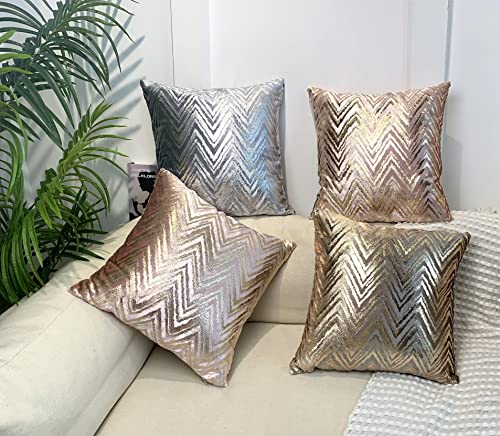 FRECINQ Federe Cuscino Argento 45 x 45 cm 2 Pezzi Moderno W Righe Cuscino Decorativo con Cerniera Invisibile Cuscini Divano Custodia Protettiva per Letto Sedia da Giardino(Argento#2)