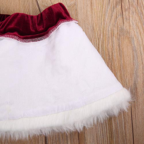 ♛Design Speciale: Questo completo di natale per neonata incluso un pagliaccetto in velluto con manica lunga e girocollo e una gonna in pile morbido e una fascia. Top è stampato ‘Baby clus' è molto carino e per la materiale speciale, complto è molrto morbido.