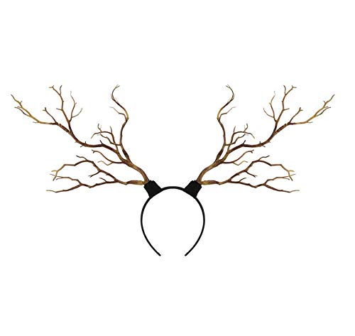 Frecoccialo Fasce per Capelli per Adulti Ramure Deer Copricapo di Natale Cerchietto per Donna e Uomo con Motivo a Rami e Corna di Renna (Cafe, Taglia Unica)