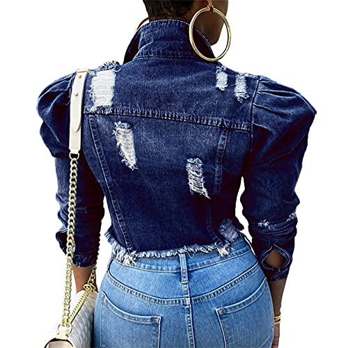 Frecoccialo Giacca Jeans Casuale per Donna Giacca Jeans Sfrangiati Manica Lunga Cappotto Elegante Bottoni in Metallo per Ragazza Giacca Jeans Strappata Fashion S-3XL (Blu scuro, M)