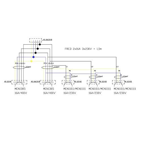 FRED 6671 - Distributore di corrente da cantiere, 2 x 16 A, 3 x 230 V