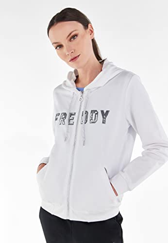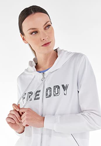 FREDDY - Felpa Leggera con Cappuccio E Grafica Paillettes, Bianco, Medium