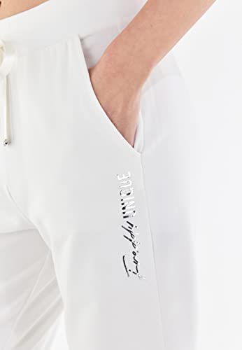 FREDDY - Pantaloni Sportivi Fondo Dritto Felpa Leggera Elasticizzata, Bianco, Small