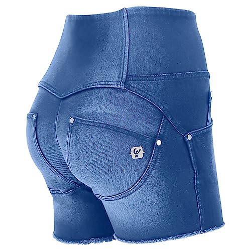 FREDDY - Shorts Push Up WR.up® Sfrangiati Vita Alta in Denim Navetta Ecologico, Denim Chiaro, Medium