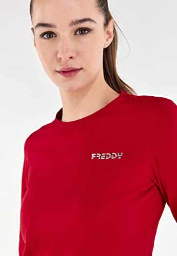 FREDDY - T-Shirt Manica Lunga in Jersey Elasticizzato, Rosso, XX Large