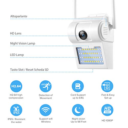 FREDI HD 1080P Telecamera wifi esterno Con LED esterno Videocamere di Sorveglianza WIFI Esterno