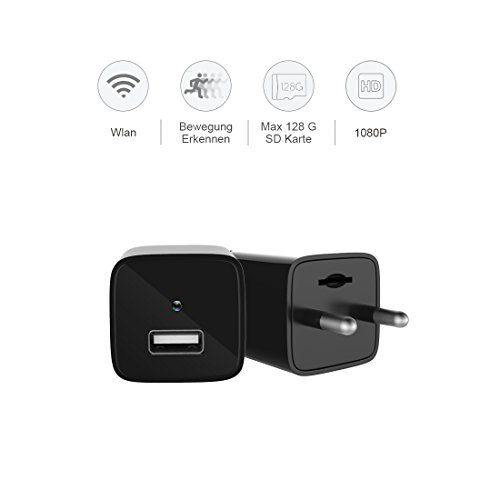 La mini fotocamera si ricorda a un caricatore da parete USB normale, l' adattatore di caricabatterie può caricare il telefono Android, su iPhone e altri dispositivi, nessuno si darà conto di che si tratta di una mini telecamera.