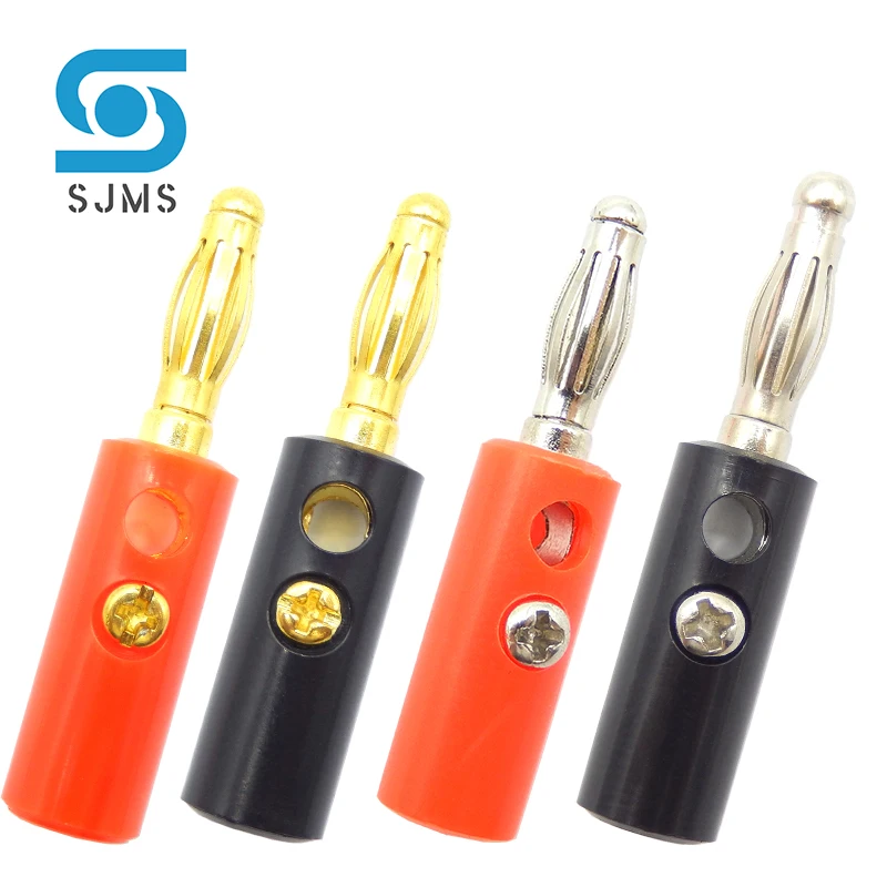 Free Shipping 10pcs 4 mm Audio Speaker Screw Banana Plug Gold Plate Plugs Connectors 4mm Test lead plug Lock screw Black Red