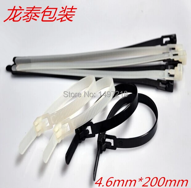 Free Shipping New 2014 High quality 100 pcs/lot 4.6x200 mm Releasable Plastic Nylon Cable Tie Zip Ties Black