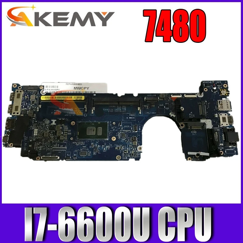 FREE SHIPPING For DELL Latitude 7480 Laptop motherboard CN-04GTKN 04GTKN 4GTKN CAZ20 LA-E132P With I7-6600U FULLY TEST WELL