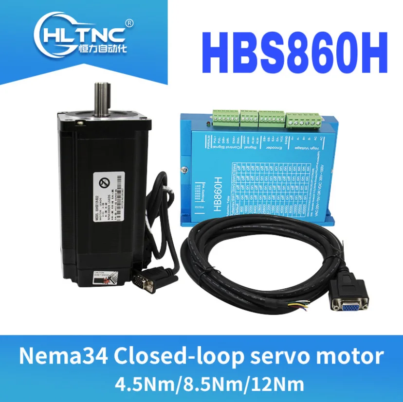 Free shipping Nema34 Closed-Loop stepper dc Motor 6A 4.5N.m/8.5Nm/12Nm+2-Phase & HB860H Hybrid Step-servo Driver For CNC