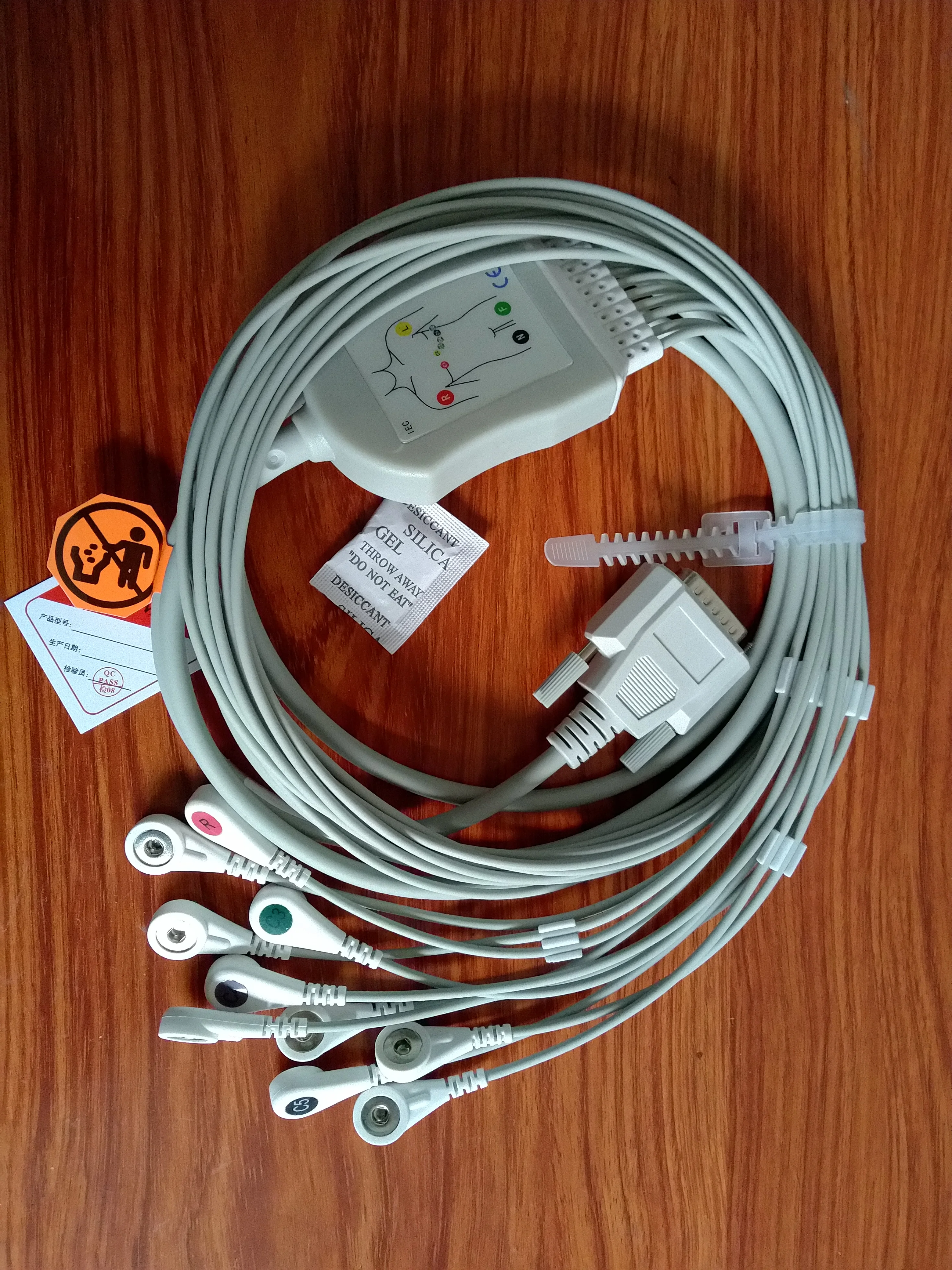 Free Shipping 15 pin Nihon Kohden, ECG-1250,ECG-1350, ECG-9101/9130/9132/9620 One-piece 10 leads cable and Snap leadwires,IEC
