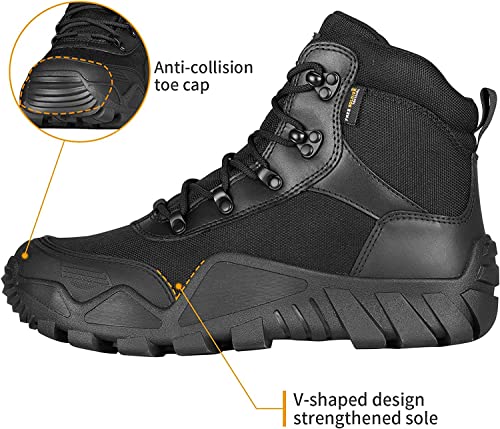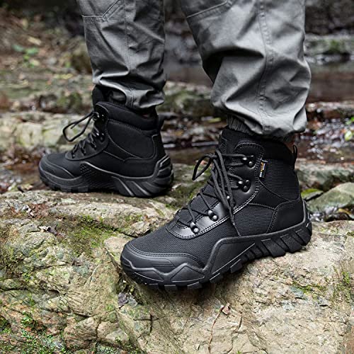 FREE SOLDIER Stivali da Caccia da Uomo Mid High Stivale Tattico da Combattimento Militare Allacciate Scarpe per Tutti i Terreni per Escursionismo, Lavoro, Esercito(Nero 46EU)