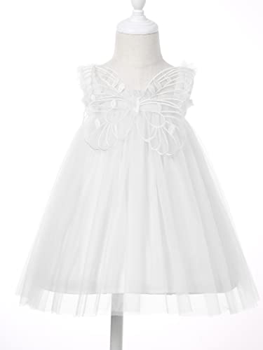 Freebily Abito da Battesimo Neonata Tutu Cotone Vestito da Principessa Ali d'Angelo Vestito da Cerimonia Elegante Senza Manica Abito da Sposa Matrimonio Nozze Compleanno Bianco 12-18 Mesi