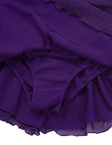 Freebily Abito Pattinaggio Artistico Bambina Maniche Lunghe Pattinatrice Velluto Argento Vestito Ballerina Balletto Tutu Danza Classica Body Ginnastica Ritmica Viola 7-8 Anni