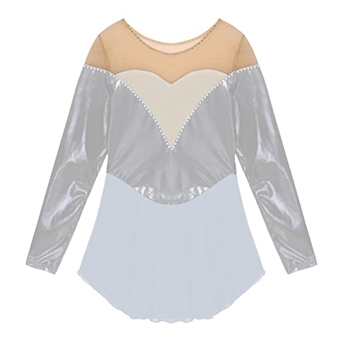 Freebily Abito da Pattinaggio Artistico sul Ghiaccio Donna Strass Leotards Vestito Danza Classica in Tulle Body da Balletto Abito da Ballo Latino Ballerina Danza Moderna Argento M