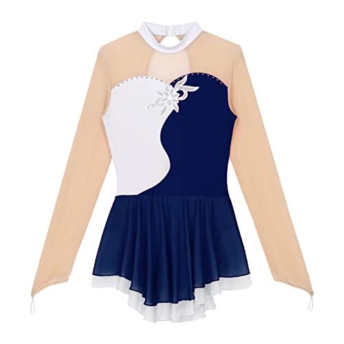 Freebily Abito da Pattinaggio Artistico sul Ghiaccio Donna Leotards con Strass Vestito Danza Classica Abito da Ballo Latino Ballerina Samba Rumba Salsa Jazz Danza Moderna Blu Navy A XL