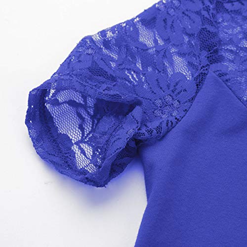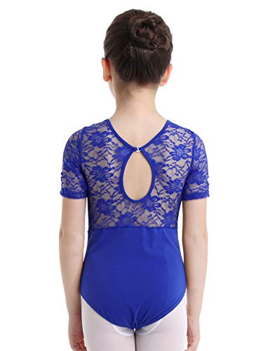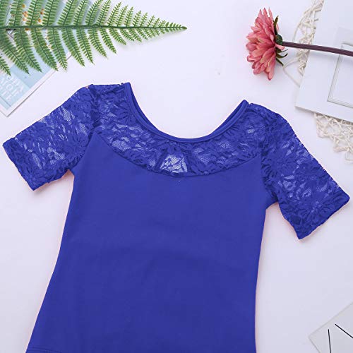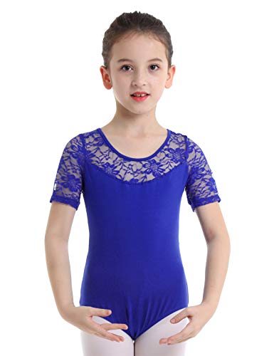 Freebily Body Danza Classica Bambina Cotone Maniche Corte Schiena in Pizzo Floreale Dancewear Leotard Tuta Ginnastica Artistica Ballerina Vestito da Balletto Jumpsuit Tutine Blu 12-14 Anni