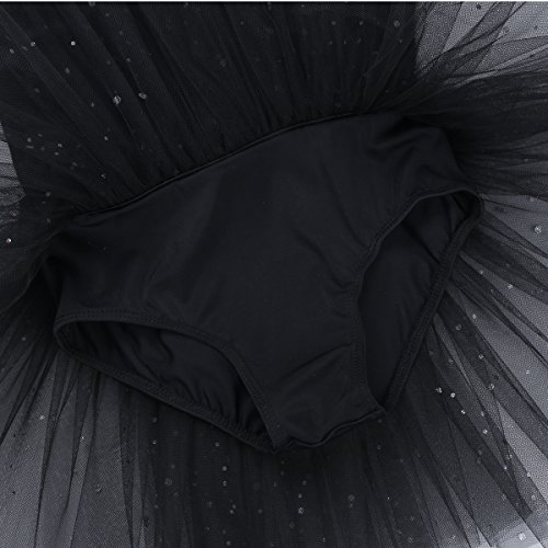 Freebily Body Danza Classica Bambina con Gonnellino Tutu da Ballerina Paillettes Abito da Ballo Corto Senza Maniche Lago dei Cigni Vestito Ginnastica Ritmica Pattinaggio Nero 2-3 Anni