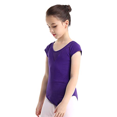 Freebily Body Danza Classica Bambina Manica Corta Ballerina Vestito Balletto Leotards Ginnastica Artistica Dancewear Jumpsuit Tuta Sportiva Abito Ballo Latino Allenamento Viola 3-4 Anni