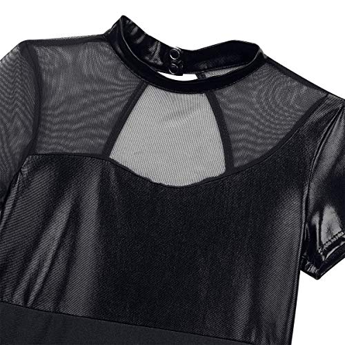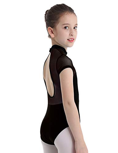 Freebily Body Ginnastica Artistica Bambina Manica Corta Schiena Scoperta Dancerwear Leotard Ballerina Vestito Danza Classica da Balletto Abito da Ballo Latino Samba Rumba Nero 10 anni