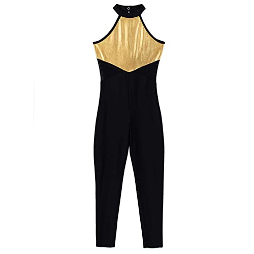 Freebily Body da Ginnastica Artistica Bambina Metallico Lucido Leotards Bodysuit a Rete Trasparente Jumpsuit Vestito Danza Classica Abito da Ballo Jazz Danza Moderna Oro 4 Anni