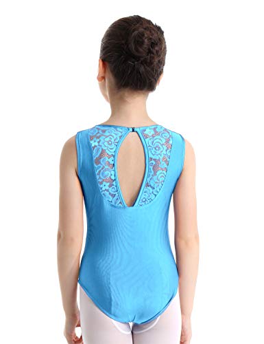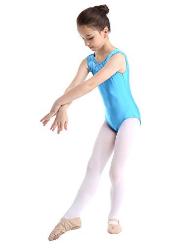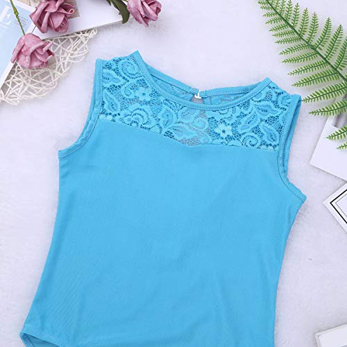 Freebily Body Ginnastica Artistica Bambina Senza Maniche in Cotone con Pizzo Floreale Tuta Sportiva per Danza Classica Vestito Ballerina Balletto Leotards Dancewear Azzurro 3-4 anni