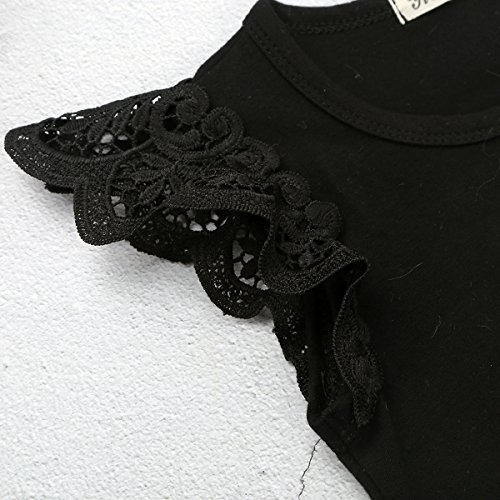 Freebily Body Neonata Senza Maniche Cotone con Volant Pagliaccetto Bimba Estate Elegante Pigiama Camicia da Notte Tutina Intera Corta Tutine Estive Ragazza 6-24 Mesi Nero 90