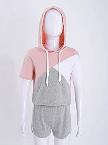 2 pezzi bambini ragazze con cappuccio maniche corte patchwork top e pantaloncini set abbigliamento sportivo