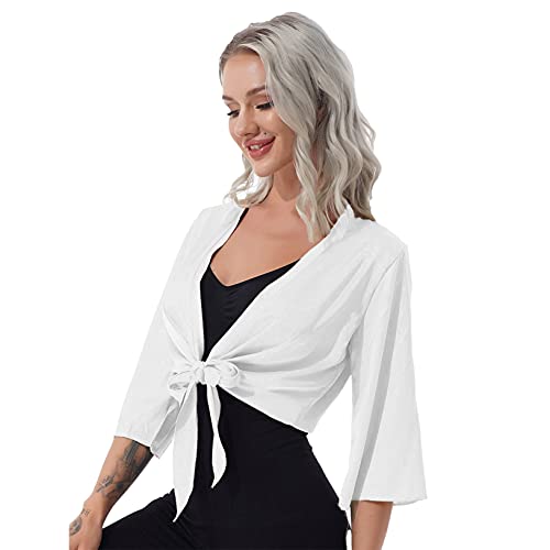 Freebily Coprispalle Donna Estivo Cotone Cardigan da Cerimonia Donna Elegante Bolero a Manica Lunga Giacca Corte Scialle Shrug per Matrimonio Sposa Nuziale Battesimo Sera Bianco A XXL