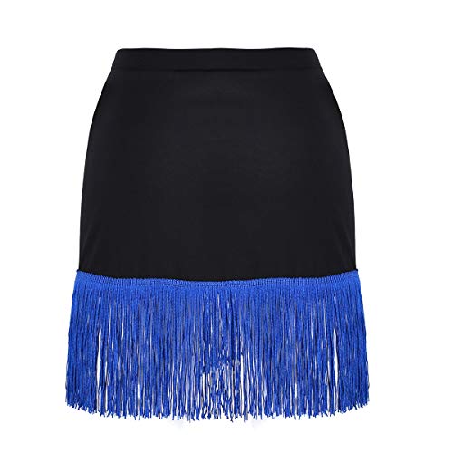 Freebily Gonna da Ballo Latino Americano Ragazza Taglie Forti Vestito Danza Moderna Rumba Samba Ballo da Salsa Ballerina Asimmestrico Abito con Frange Nero&Blu Reale Small