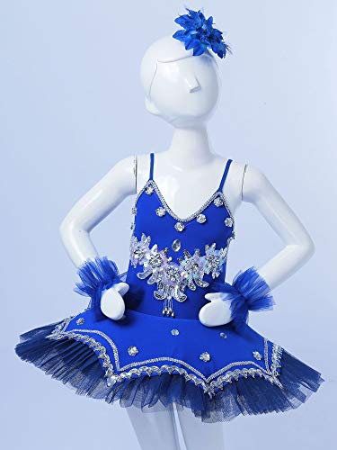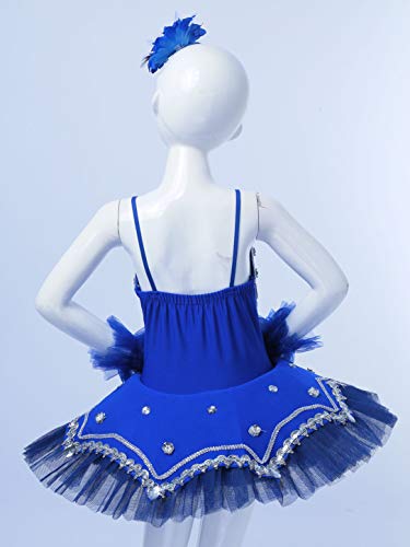 Freebily Vestito da Balletto Bambina Tutu Paillettes Principessa Abito da Danza Classica Ballerina Body da Pattinaggio Artistico Lago dei Cigni Costume Natale Carnevale Royal_Blue 4-5 anni